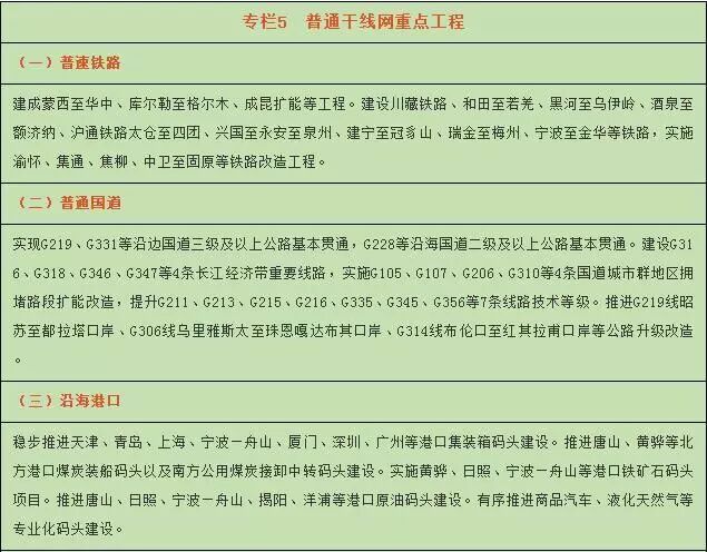 以普速铁路、普通国道、港口、航道、油气管道等为主体,构建运行效率高、服务能力强的综合交通普通干线网络。