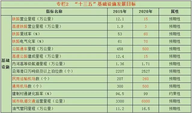 铁路:新增铁路营业里程2.9万公里,高铁增加约1.1万公里,高速铁路覆盖80%以上的城区人口100万以上城市。