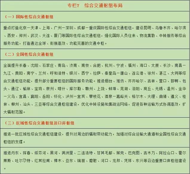 着力打造北京、上海、广州等国际性综合交通枢纽,加快建设全国性综合交通枢纽。在全国重点打造150个开放式、立体化综合客运枢纽。