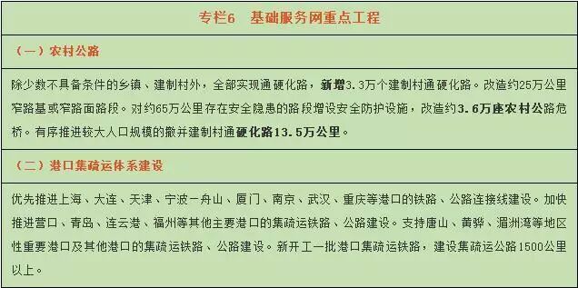 港口:新增沿海港口万吨级及以上泊位超过300个,内河高等级航道网基本建成。