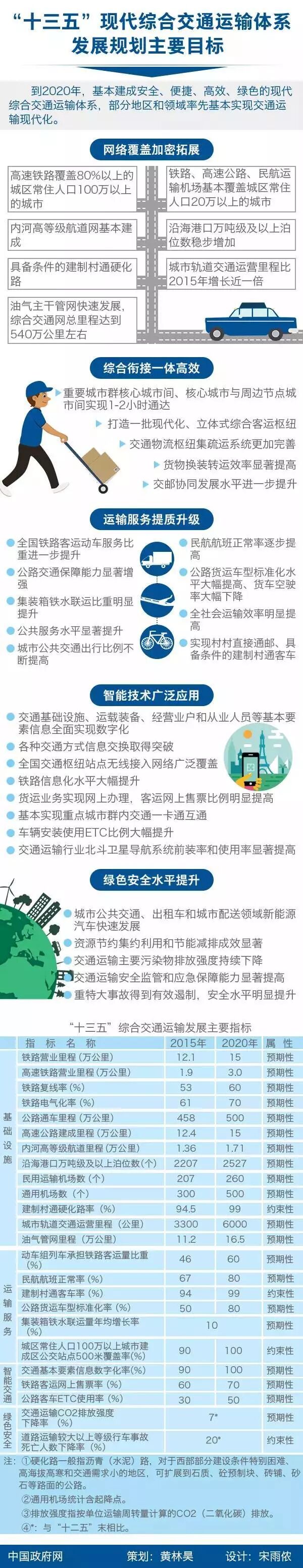 经李克强总理签批,国务院日前印发《“十三五”现代综合交通运输体系发展规划》(以下简称《规划》)。全文篇幅较长,此规划的重点工程建设项目已经整理,方便大家参考及阅读。